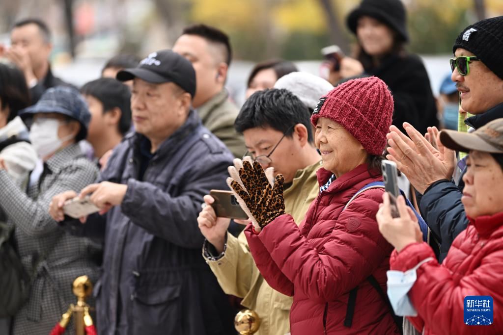 11月24日,观众在天津人民艺术剧院门前观看演出。