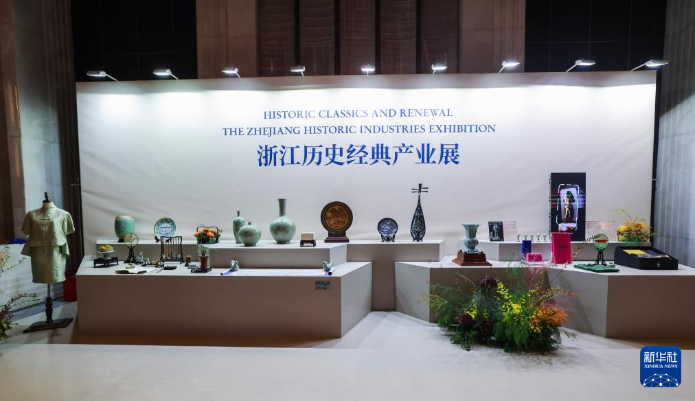 这是11月25日拍摄的浙江历史经典产业展台上展示的浙江特色产业名品和大师作品。