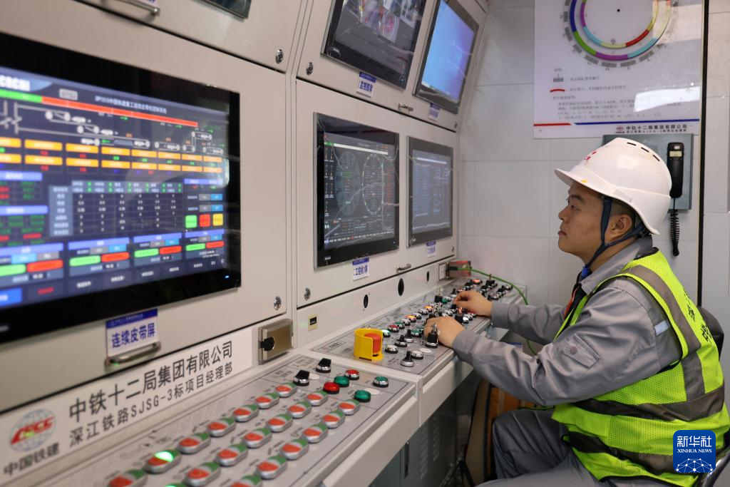 11月26日,盾构机操作人员调试盾构机参数。