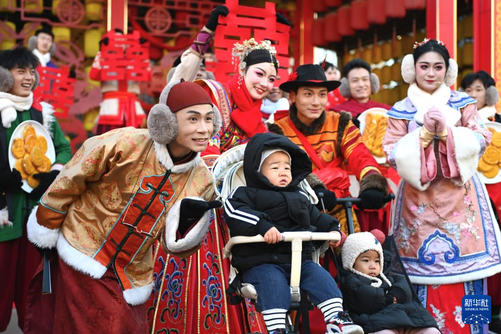 11月25日,演员在银川市漫葡·看见贺兰沉浸式演艺小镇欢迎游客到来。