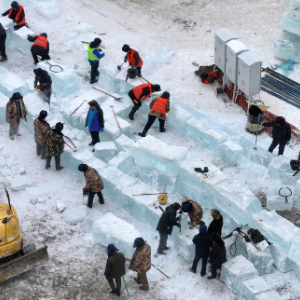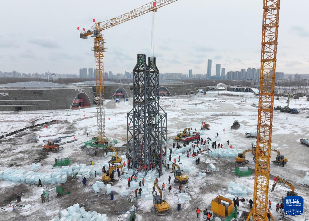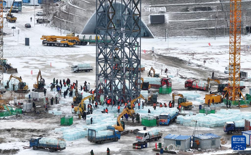 当日,第二十六届哈尔滨冰雪大世界冰建施工正式开始,园区内一片繁忙景象。