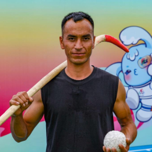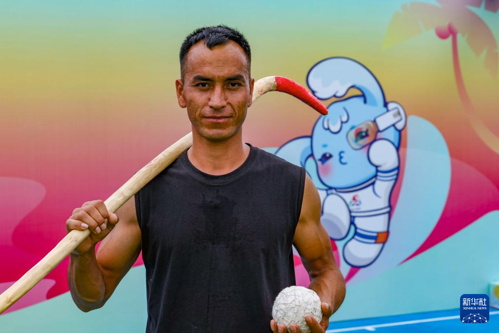 “麦热球是一项非常古老的运动,我爷爷的爷爷那时候就开始玩。”阿卜杜拉艾孜则说。麦热球,又被称为“维吾尔族曲棍球”,是在新疆和田地区广泛流行的古老运动。规则类似于现代曲棍球,但是不设置守门员,把球打到对方球门里即为得分。2021年,这项运动(维吾尔族曲棍球)被正式列入国家级非物质文化遗产代表性项目名录。阿卜杜拉艾孜则从很小就开始接触麦热球,在农闲时他常常和兄弟们打上几场麦热球。他说:“小的时候,爸爸教会我打麦热球,现在我要把这项运动带来的快乐传递给更多人。”
