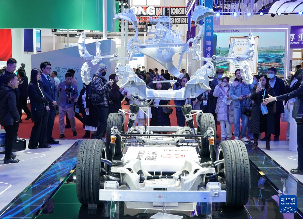 11月27日,人们在第二届中国国际供应链促进博览会先进制造链展区中信集团展台参观“中信戴卡轻量化铝制汽车零部件一体化方案”。