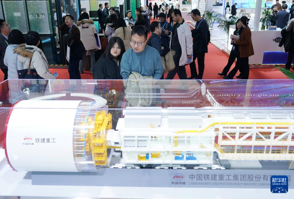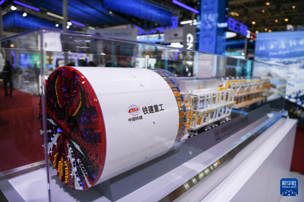 11月27日,人们在第二届中国国际供应链促进博览会先进制造链展区中国铁建展台参观一款国产超大直径盾构机模型。