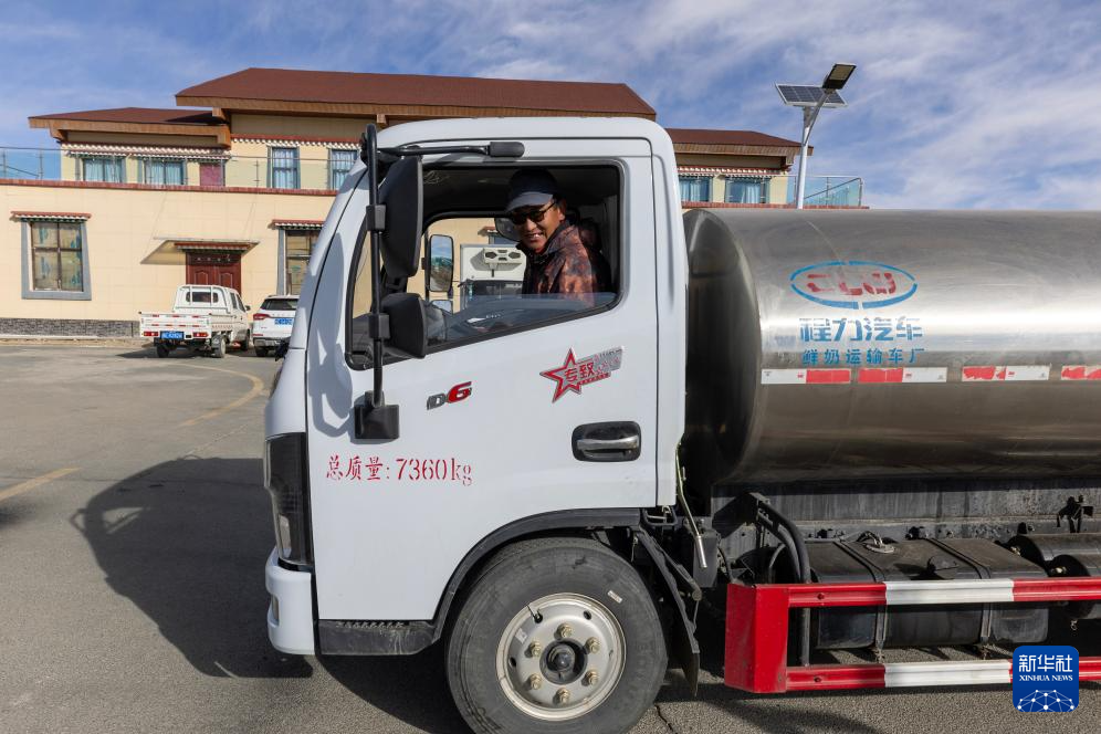 11月28日,驾驶员用罐车将巴氏杀菌后的新鲜牦牛奶运往拉萨市场。