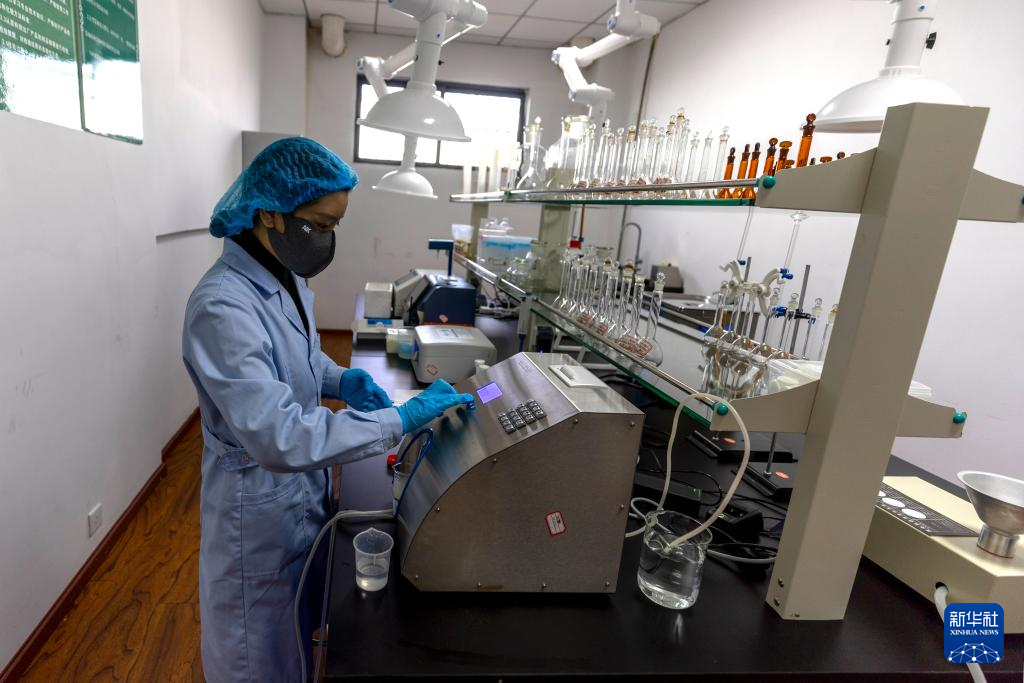 11月28日,质量检测人员桑吉在实验室检测产品质量。
