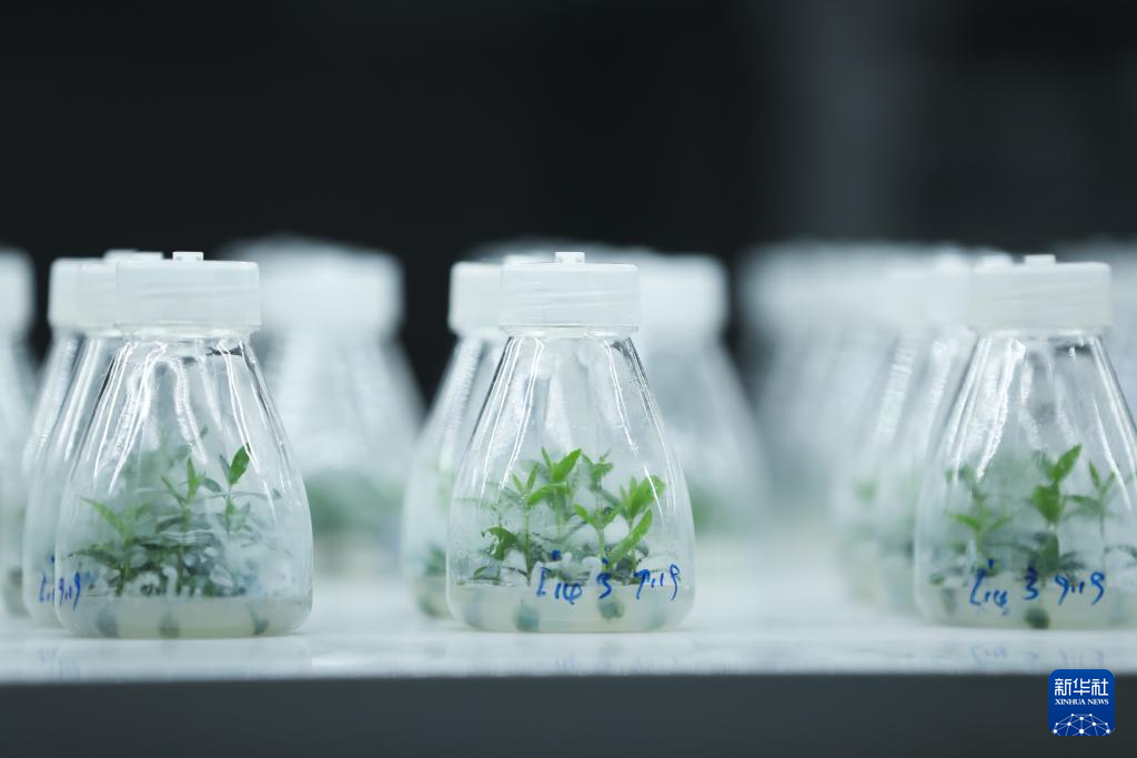 这是10月28日在甘肃省陇南市武都区的陇南市经济林研究院实验室内拍摄的油橄榄组培苗。