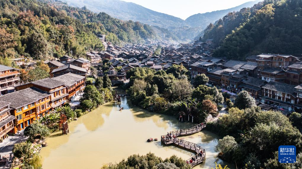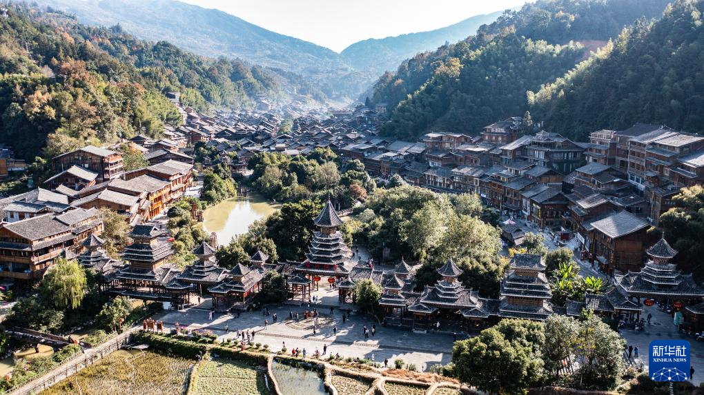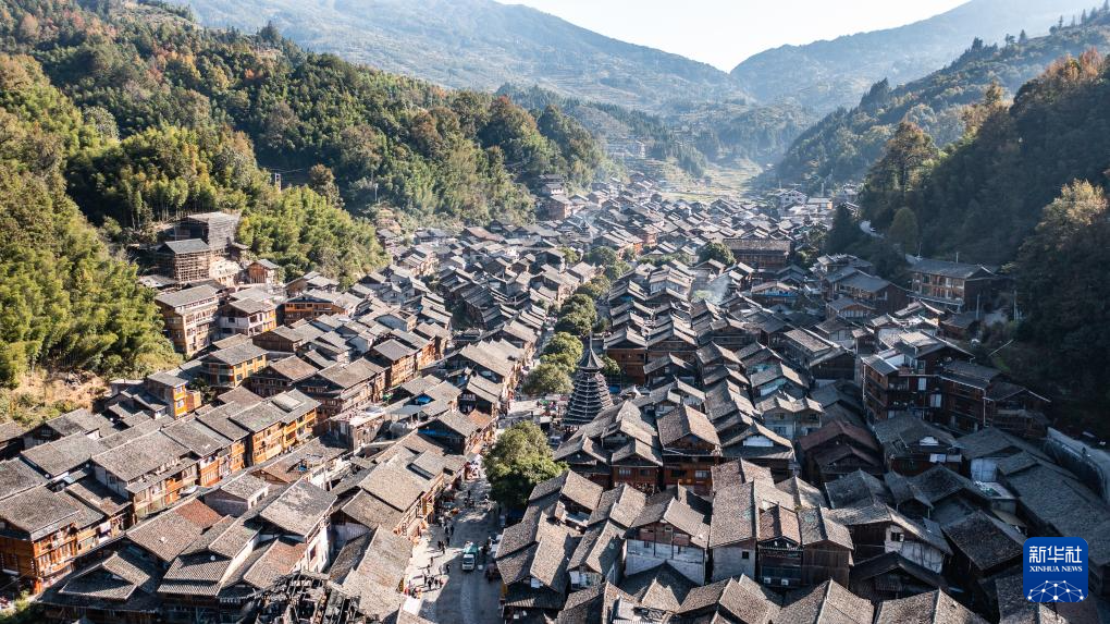 11月29日拍摄的黎平县侗年活动分会场肇兴侗寨(无人机照片)。