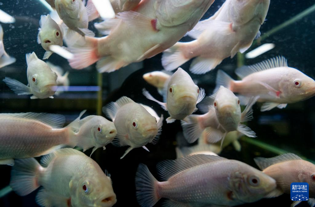 这是11月27日在西部(重庆)科学城种质创制大科学中心拍摄的科研团队培育的新品种罗非鱼。