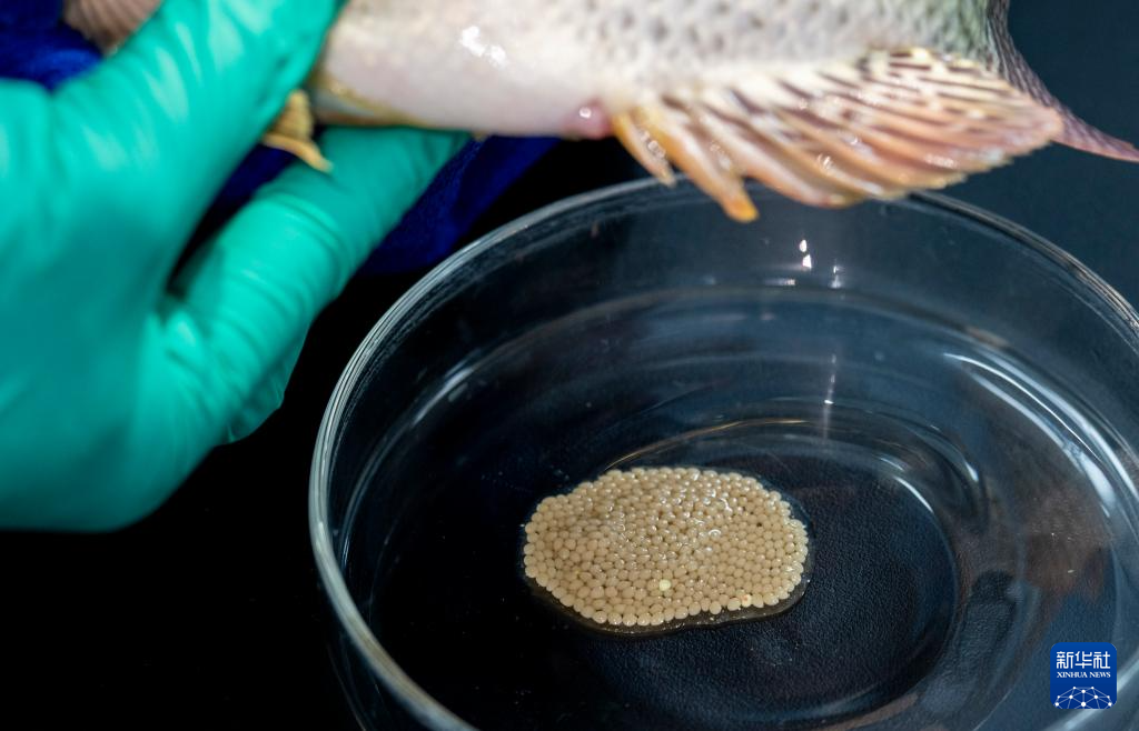 11月27日,在西部(重庆)科学城种质创制大科学中心的实验室,研究人员在为野生罗非鱼卵进行人工授精。