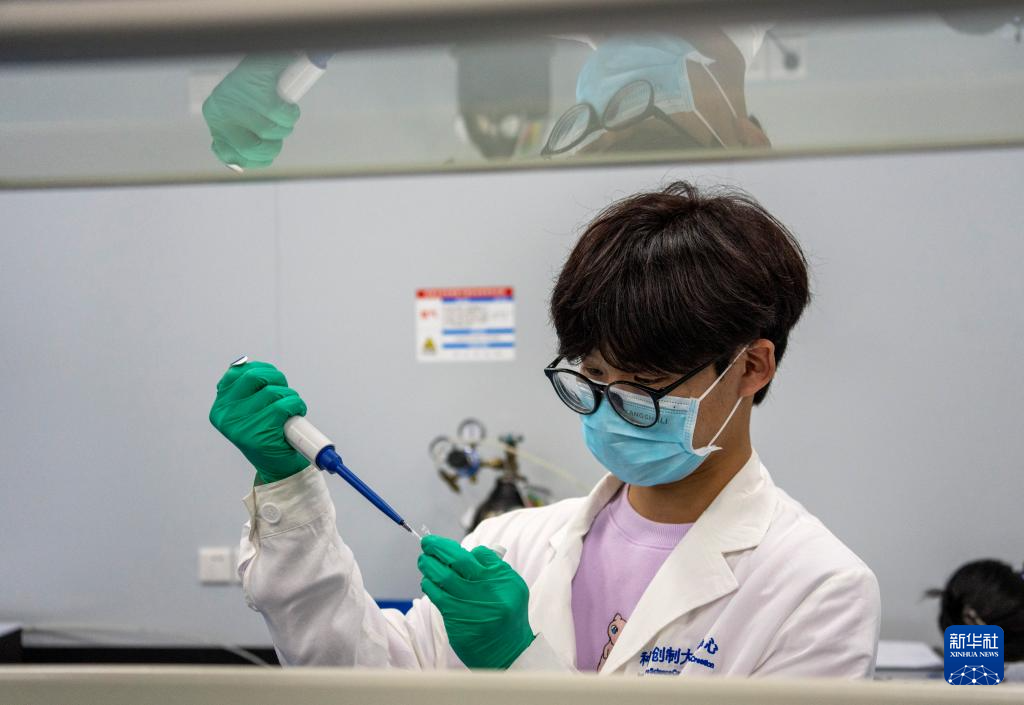 11月27日,在西部(重庆)科学城种质创制大科学中心的实验室,研究人员在配制显微注射试剂。