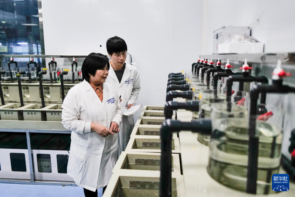 11月27日,在西部(重庆)科学城种质创制大科学中心养殖室,研究人员在观察记录新品种罗非鱼的生长情况。