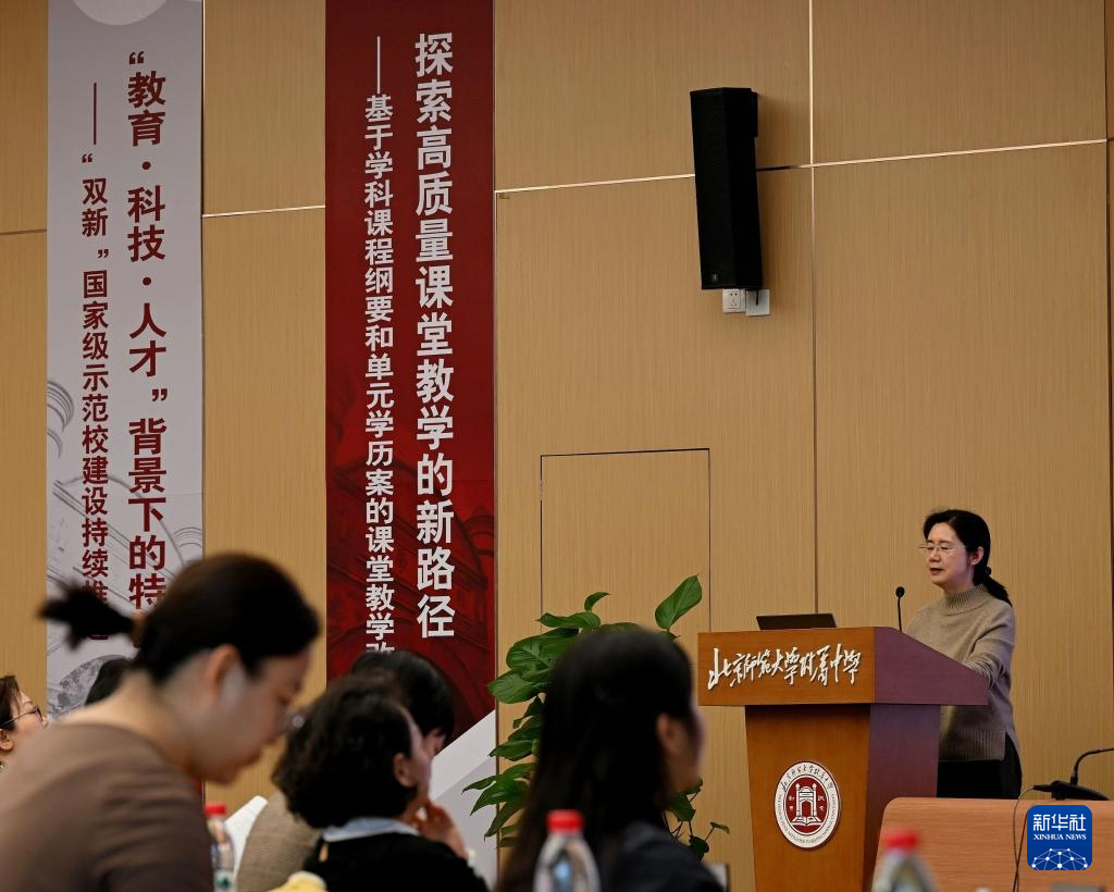 11月29日,北京师范大学附属中学校长王莉萍在研讨会上发言。