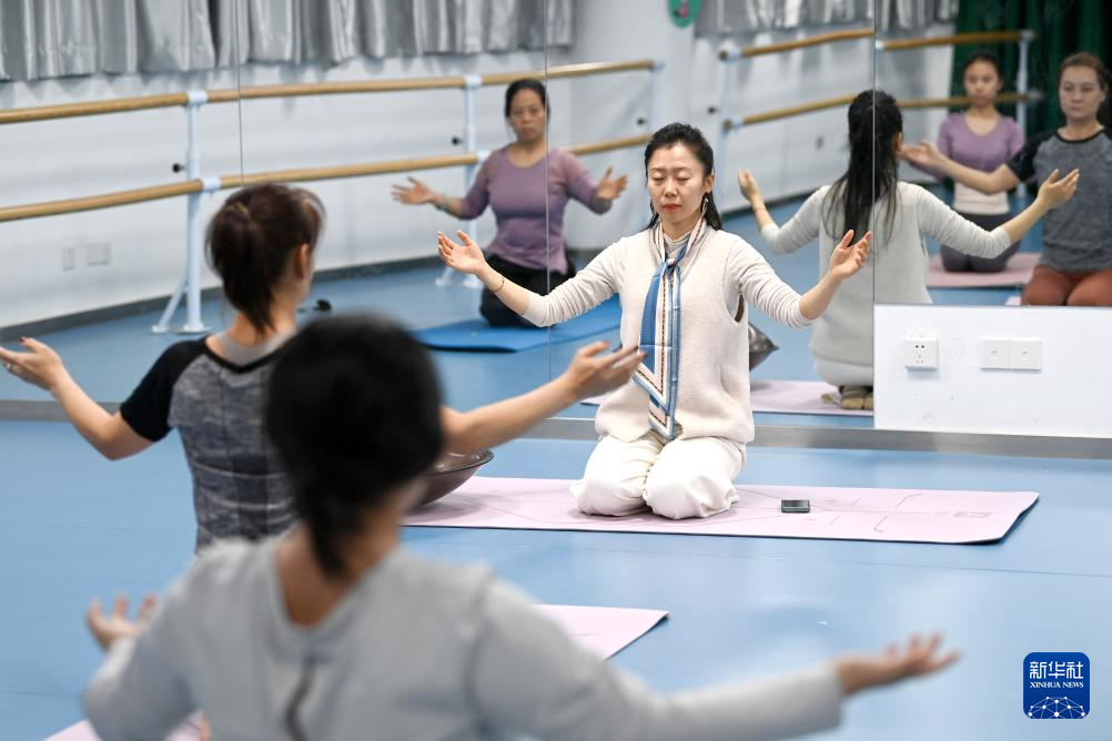 居民在西安市未央区浐灞半岛社区的成人夜校上瑜伽课(11月29日摄)。