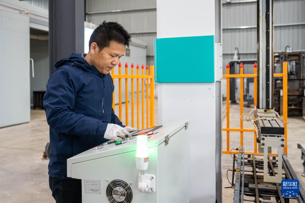 11月26日,在湖南省益阳市资阳区益阳富佳科技有限公司,工作人员演示操控高速育秧流水线设备。