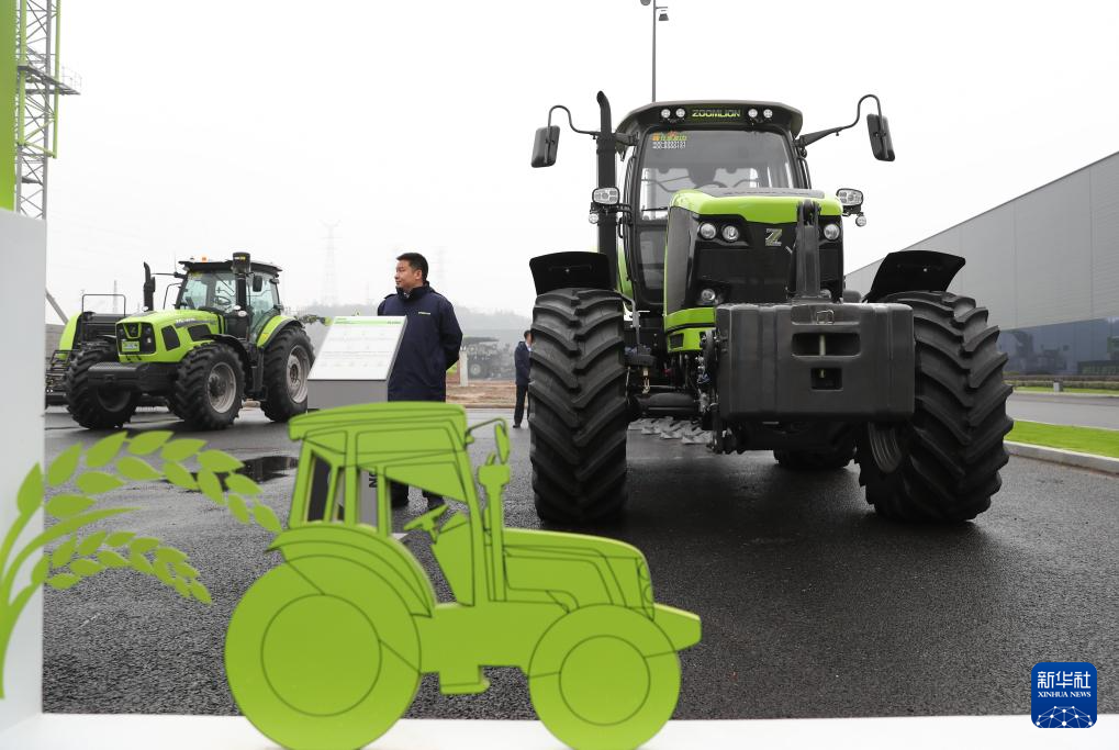 这是11月24日在湖南长沙中联重科智慧产业城拍摄的中联重科PL2304-1大马力轮式拖拉机(展板)。