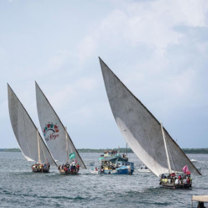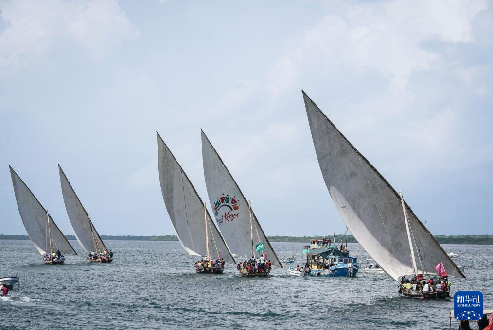 11月29日,拉穆居民在肯尼亚东部印度洋上比赛独桅三角帆船。这种帆船曾是东非海洋贸易的主要交通工具。