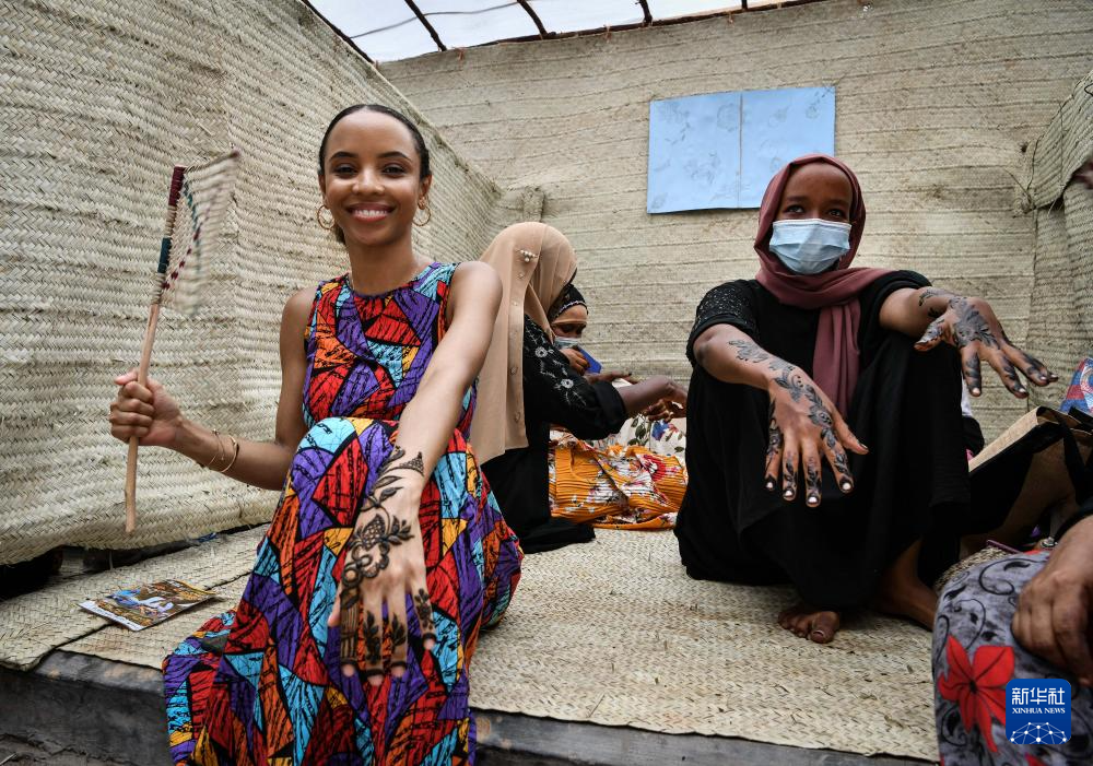 11月29日,在肯尼亚东部印度洋拉穆群岛上的拉穆古镇,人们在拉穆文化节上体验传统手绘。