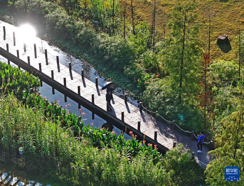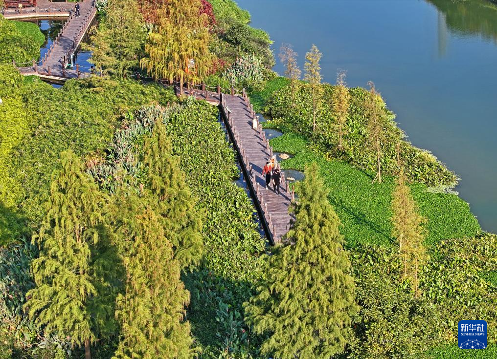 初冬时节,广西南宁市那考河湿地公园草木葱茏、鲜花绽放。那考河昔日曾是南宁市一条污染严重的“臭水沟”。经过全流域治理和公园化建设,那考河湿地公园如今成为市民休闲的好去处。