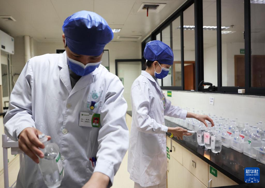 11月21日,在南宁市第四人民医院检验科免疫室,医生对待检样本进行艾滋病病毒检测。