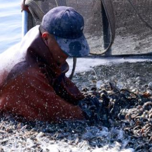 12月1日,河北省唐山市丰南区西葛镇越支五村的农民在鱼塘捕捞泥鳅。