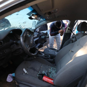 12月1日,在约旦河西岸北部杰宁地区的赛尔镇,当地民众查看在以军行动中被损毁的车辆。