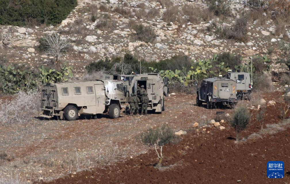 这是12月1日在约旦河西岸北部杰宁地区的赛尔镇开展行动的以军车辆。