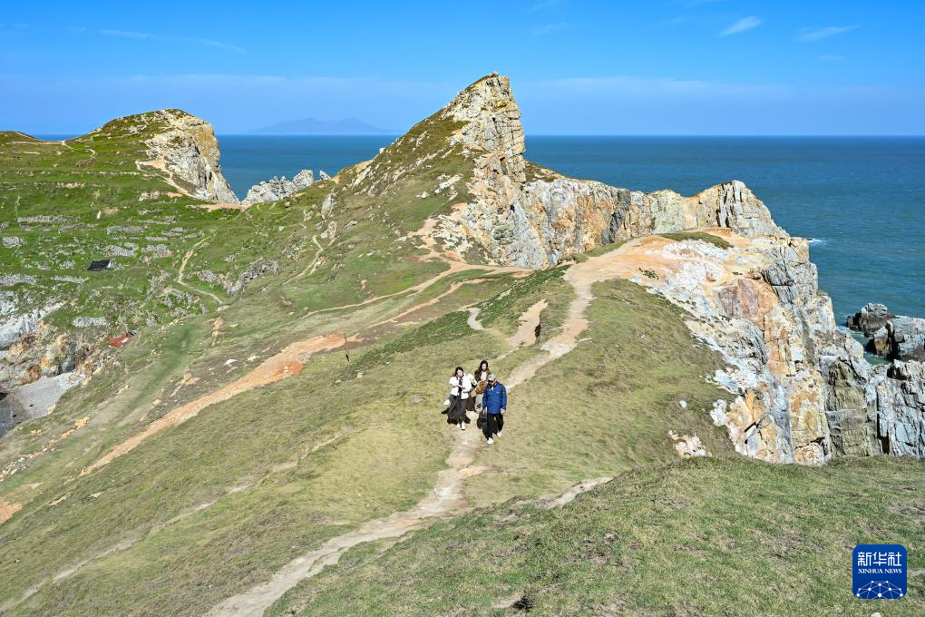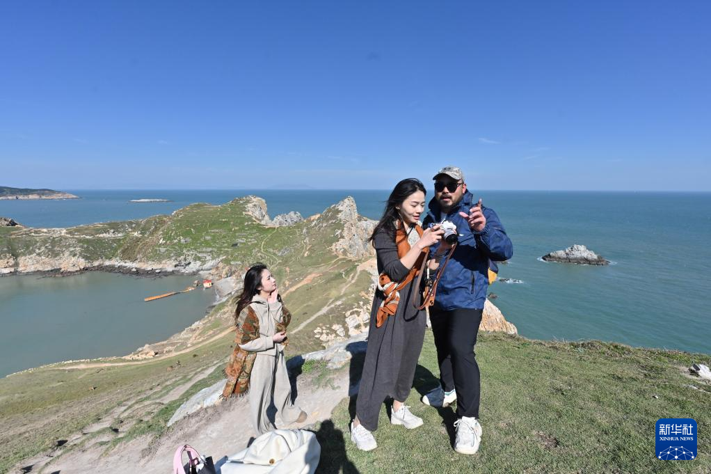 11月29日,在霞浦县海岛乡东礵岛,姜瑜(右一)带领游客游览。