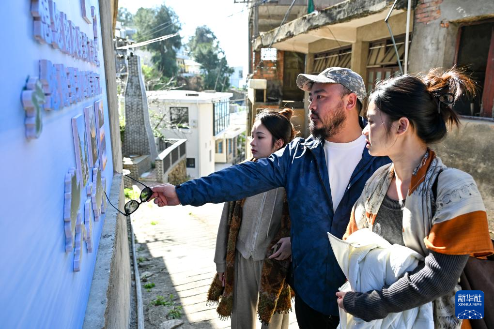 11月30日,在霞浦县长春镇斗米村海尾自然村,姜瑜(右一)帮游客拍摄照片。