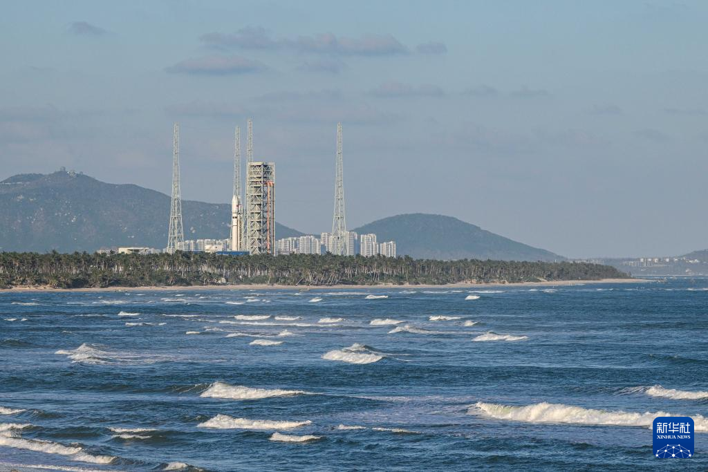 11月29日在海南文昌拍摄的海南商业航天发射场二号发射工位和等待发射的长征十二号火箭。
