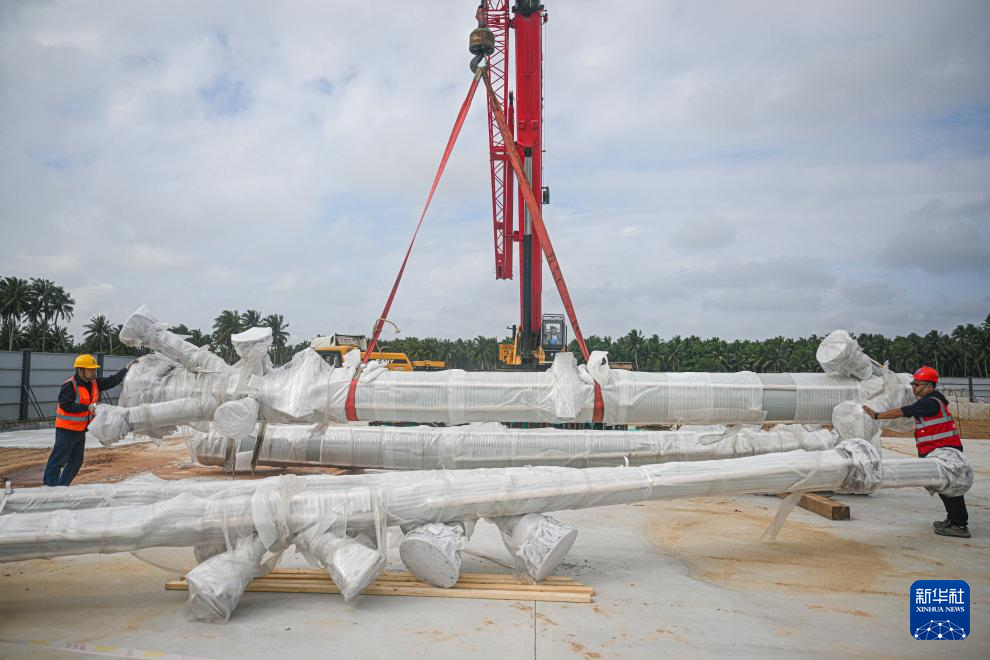 工人在海南文昌建设海南商业航天发射场一号发射工位(2022年9月17日摄)。