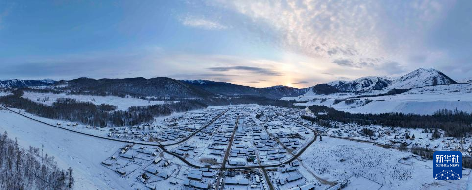 这是11月30日在新疆阿勒泰地区布尔津县拍摄的禾木村冬景(无人机全景照片)。