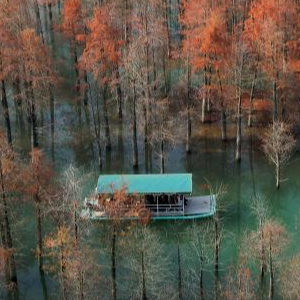 初冬时节,安徽省宣城市宁国市方塘乡的2000余亩红杉林层林尽染,进入一年中最美的时节,游客泛舟水上,宛若在画中游览。