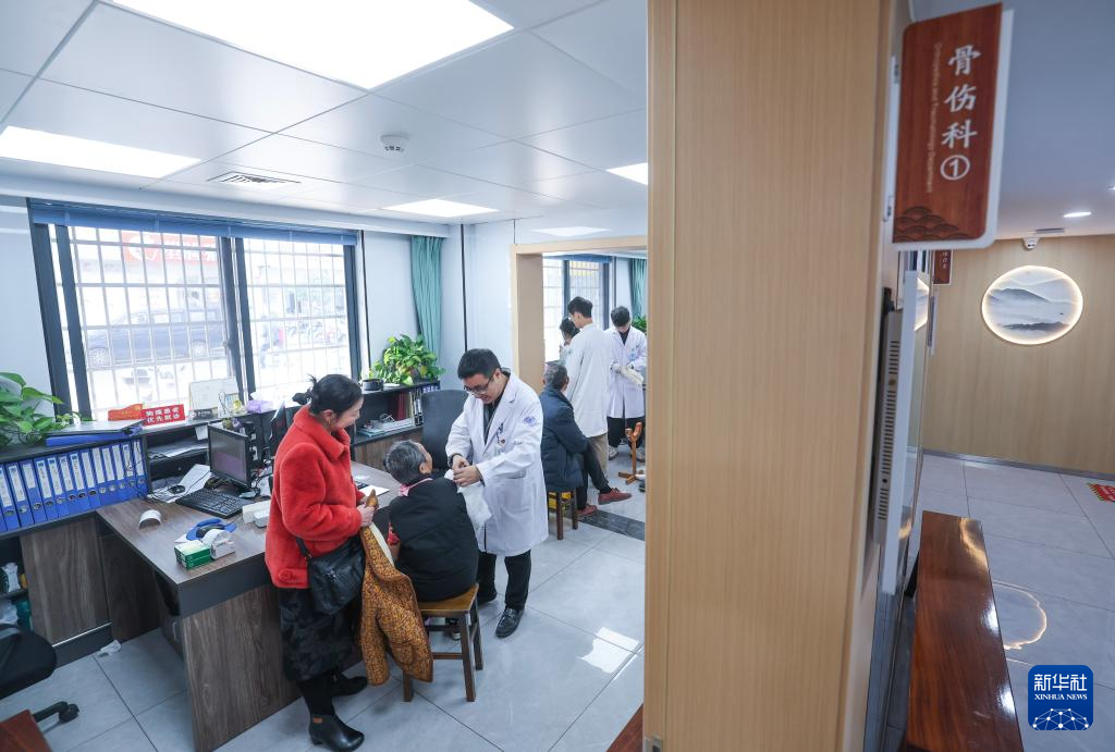 12月3日,在安华镇中心卫生院的中医骨伤科,医生给患者进行康复治疗。