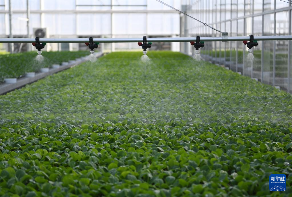 12月2日,在谢径安传化植物科学中心,自动喷灌系统在数字种苗工厂内灌溉育苗。