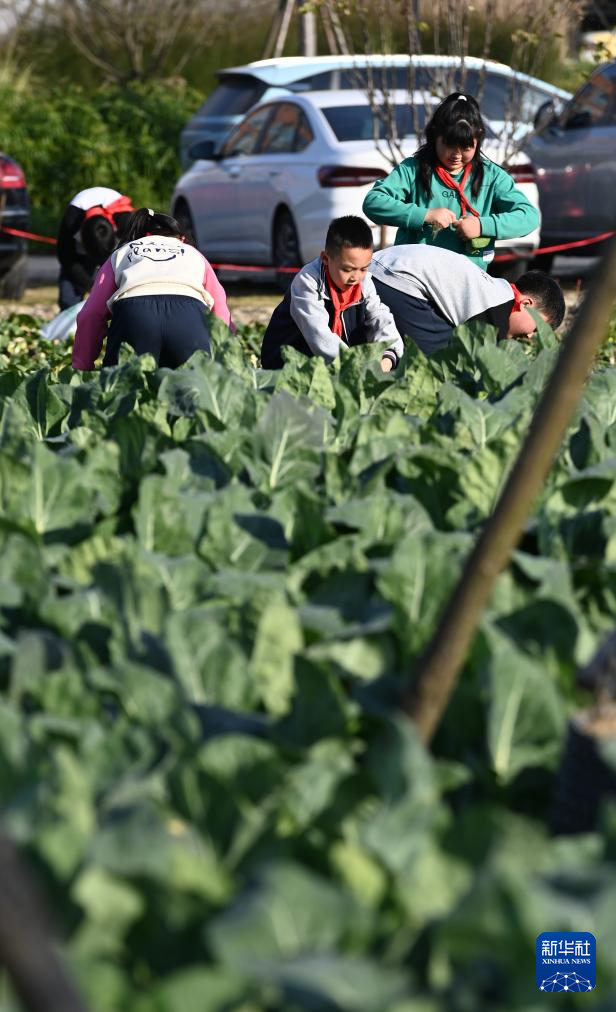 12月2日,在谢径安传化植物科学中心,杭州萧山区径游小学学生在体验蔬菜采摘。