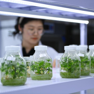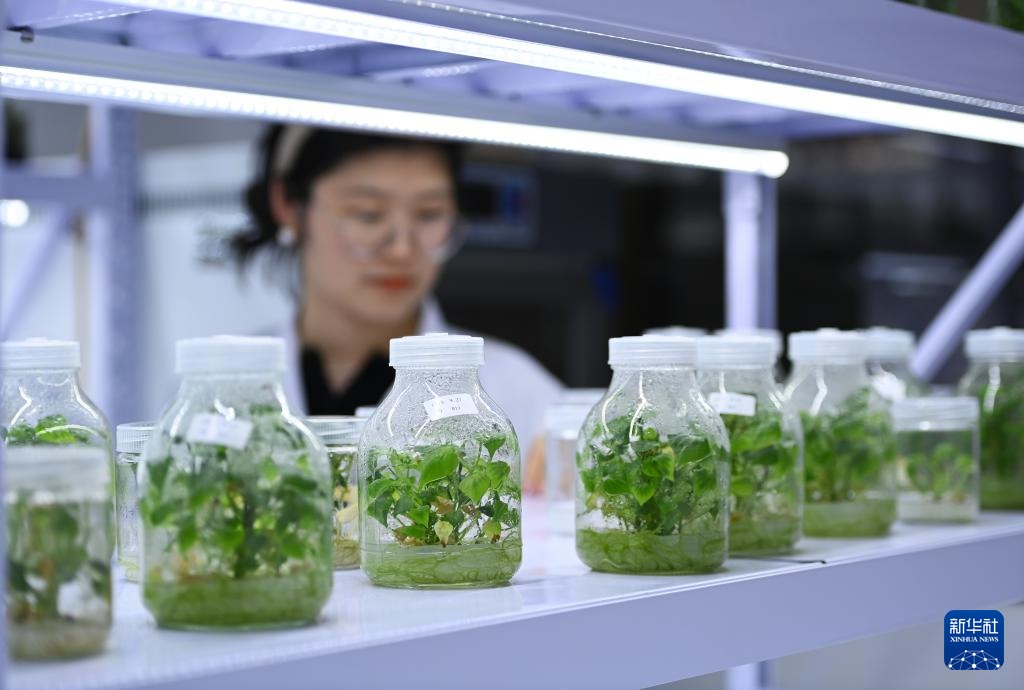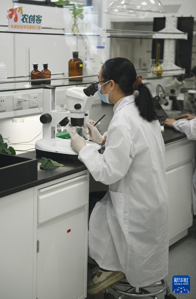 12月2日,工作人员在谢径安传化植物科学中心实验室里观察作物生长情况。