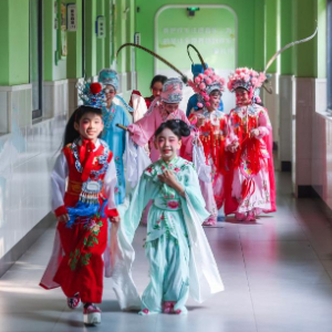 近年来,浙江省诸暨市西湖小学把地方传统戏剧越剧作为推动实现美育教育的重要方式,搭建了校园戏曲角,设立了校园戏剧主题日,自编了《西湖越韵》校本教材,把越剧课程纳入到学校日常教学中,定期邀请当地非遗中心戏曲名角来校授课,并通过“戏剧+”融合式课程和活动模式创新,让师生共同参与戏剧创演、戏帽制作、脸谱描绘、戏曲人物3D设计,营造浓厚的戏剧文化氛围。
