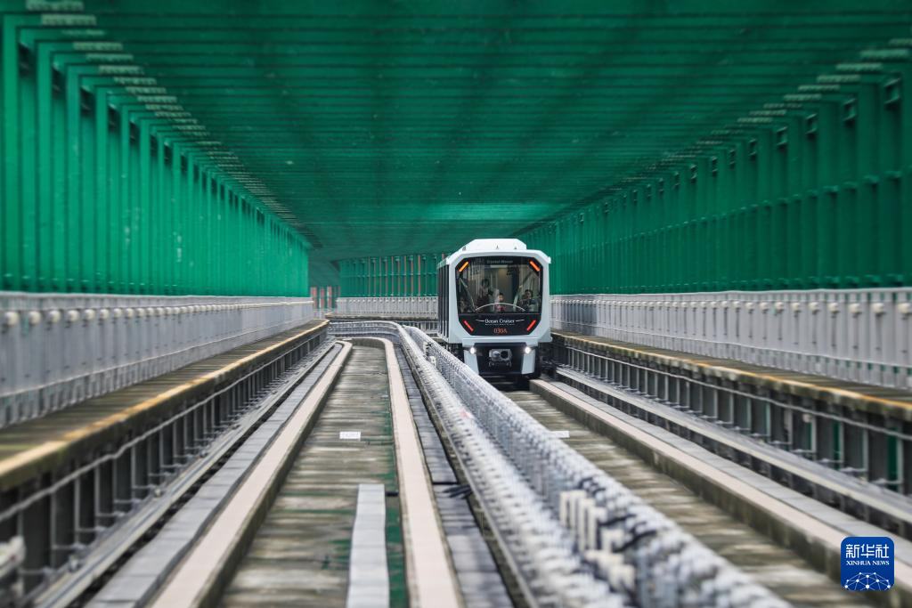 这是11月21日在澳门拍摄的行驶中的轻轨列车。