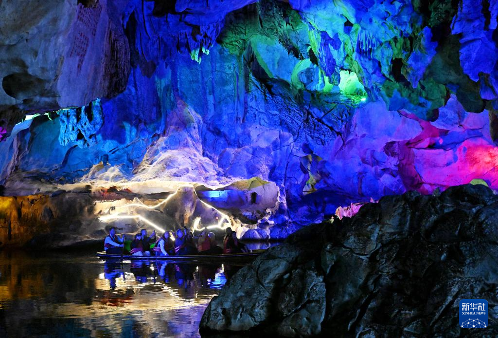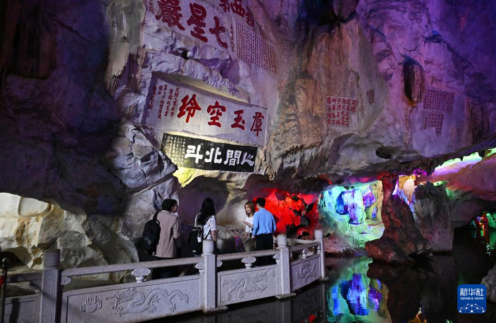 12月2日,游客在肇庆七星岩景区龙岩洞内参观。
