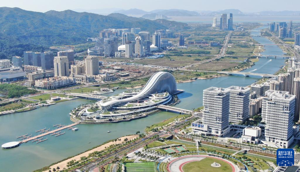 这是11月26日拍摄的横琴粤澳深度合作区标志(无人机照片)。