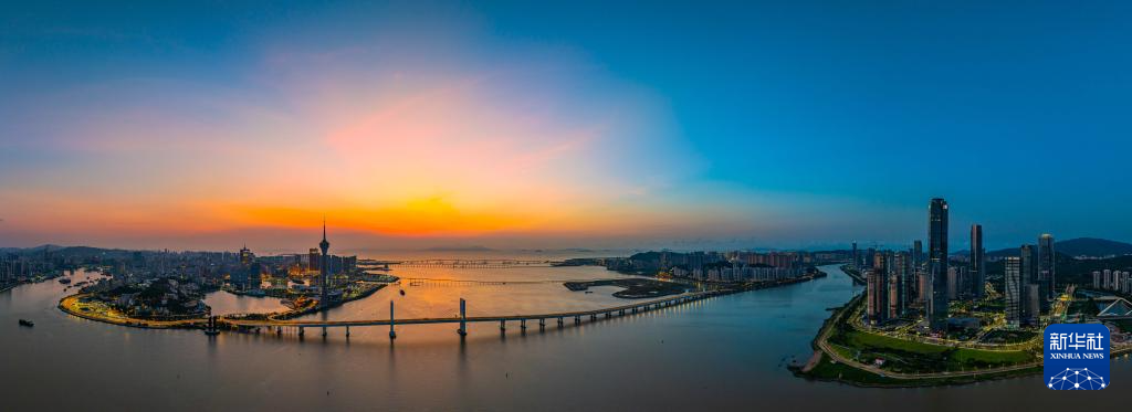 这是8月8日拍摄的澳门和横琴景色(无人机全景照片)。