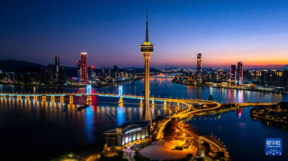 这是7月5日拍摄的澳门旅游塔和横琴、珠海景色(无人机照片)。
