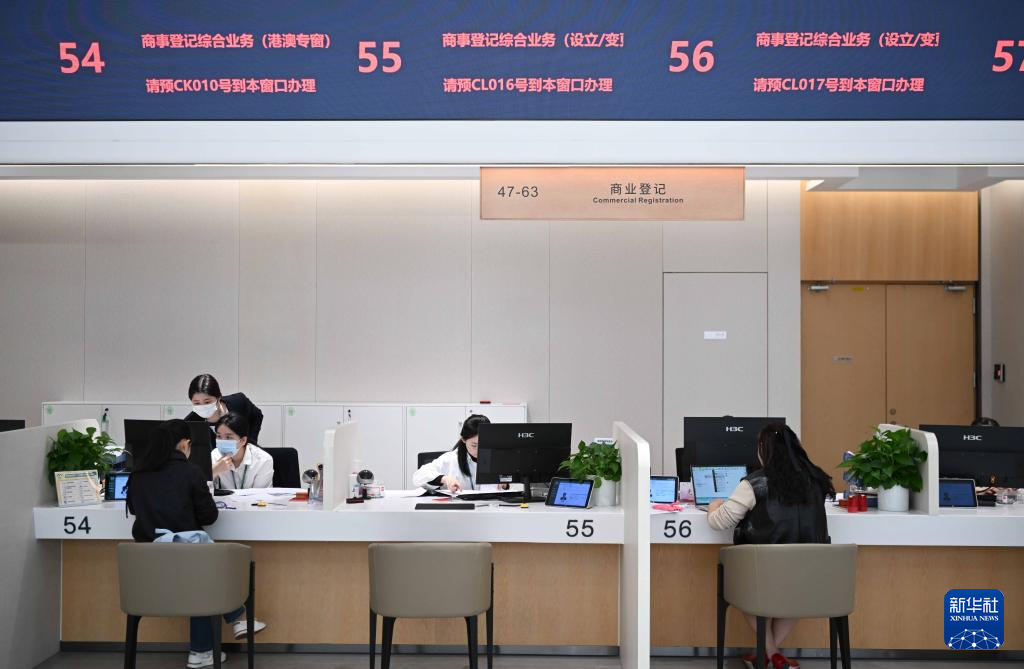 11月26日,在横琴粤澳深度合作区政务服务中心,工作人员在办理商业登记业务。