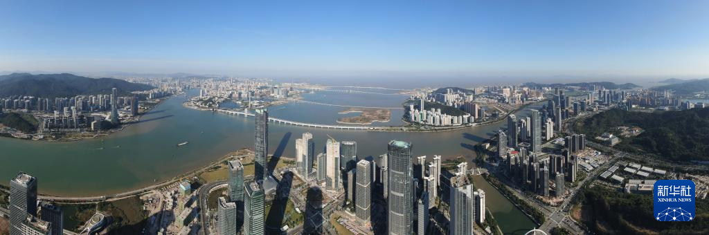 这是11月26日拍摄的横琴、珠海及澳门(无人机全景照片)。