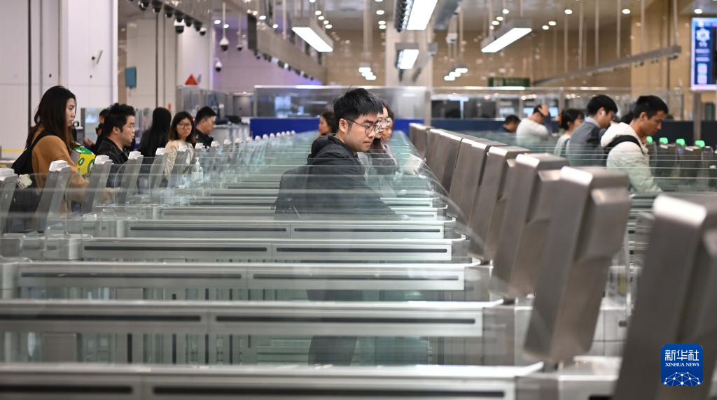 在横琴口岸,边检站执勤民警在验放出入境旅客(11月25日摄)。