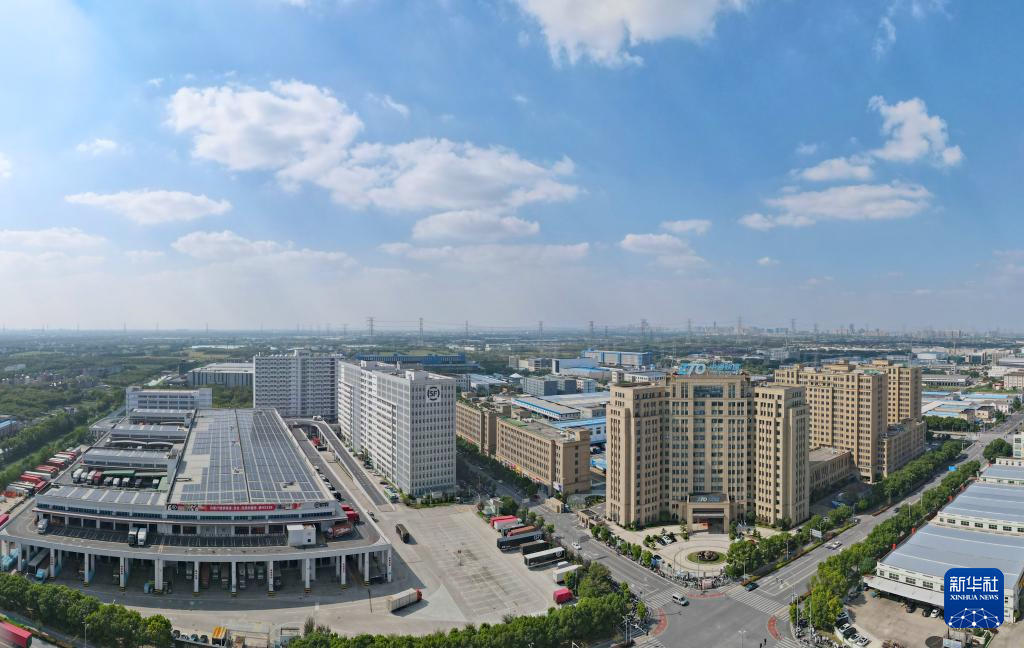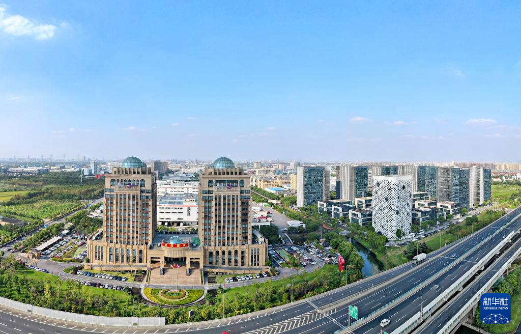 这是位于上海市青浦区的华新镇企业服务中心大楼(无人机照片,10月9日摄)。