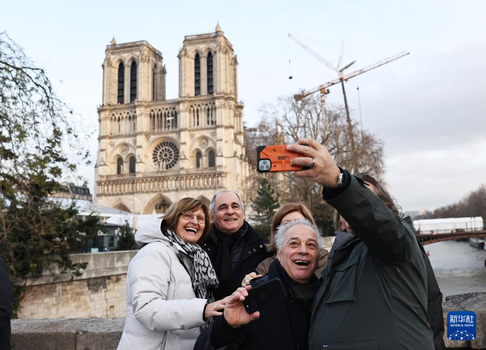 12月4日,人们在即将重新开放的法国巴黎圣母院前拍照留念。