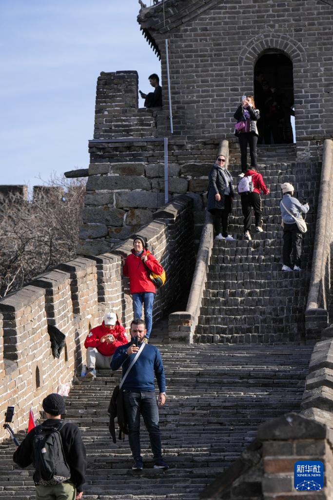 11月4日,外国游客在北京慕田峪长城游览。
