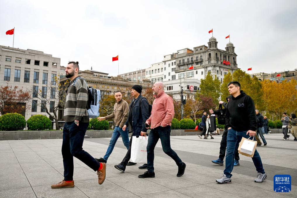 12月4日,来自俄罗斯的游客在上海外滩游览。